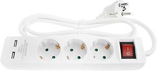 Steckdosenleiste mit 2x USB 3-fach 1,5m Kabel mit Schalter & Kindersicherung in weiß geeignet für 230V 16A 3500W mit Befestigungsmöglichkeit