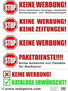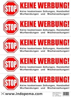 Keine Werbung! 2 Briefkastenaufkleber - Keine kostenlosen Zeitungen, Handzettel, Wurfsendungen und Wochenzeitungen! - Absolut wetterbeständig 74x52 mm Marke: Timeless 154 Sternebewertungen 099€ Preisangaben inkl. USt. Abhängig von der Lieferadresse kann die USt. an der Kasse variieren. Weitere Informationen. 2 Aufkleber 75mmx52 mm Aufkleber STOP Bitte keine Werbung und kostenlose Zeitungen einwerfen (Briefkasten, keine Reklame) Problemlose Befestigung durch Ankleben Ein Produkt, das trotz seines günstigen Preises allen Anforderungen einer dauerhaften Kennzeichnung im Innen- und Außeneinsatz gerecht wird Größe: 2x7cm Material: Folie selbstklebend 7 St./Bogen Artikel-Nr. 8107F20 Für den Außenbereich geeignet: Alle Schilder, Etiketten und Aufkleber von König Werbeanlagen verfügen über einen UV-Schutz, sind