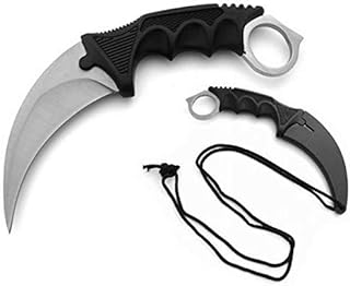 KOSxBO® CSGO Knife - Karambit Messer schwarz 19 cm - Tactical Hunter Knife Black Devil Editon - Counter Strike Global Offensive Skin - schwarzes Neck Knife