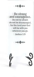 Stark Sein und Mutig Inspirierende Glas Schild. Eine Inspirierende Schrift Vers für Ihren Schreibtisch, Oder Ein Geschenk Macht. von Lifeforce Glas. Weiß.