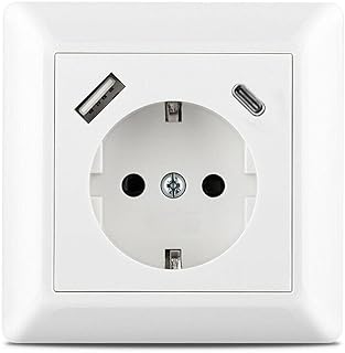 230 V Steckdose mit 1 x USB-A & 1 x USB-C, max. 3.400 mA, Schuko Wandsteckdose Unterputz, passend für Gira System 55, Reinweiß glänzend, Weiß