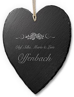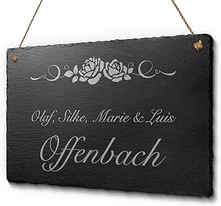 Schöne Schiefer Türschilder Herz für die Haustür mit Gravur | Schiefer-Schild mit Kordel zum Aufhängen in versch. Größen Gravierte Namensschilder Klingelschilder mit Namen oder Texten : Amazon.de: Baumarkt Türschild Namensschild Schiefer Haustürschild 22x16cm kreativmiller (173) 23,00 € Schiefertafel, Türschild Schiefer, Hundeschild, Warnschild Hund Katze, Schieferherz personalisiert, Vorsicht Hund, mit Foto Silhouette Heartlightsgeschenke (309) 63,00 € KOSTENLOSER Versand Hausschild aus Schiefer, Türschild, rustikal YounifyShop (2)