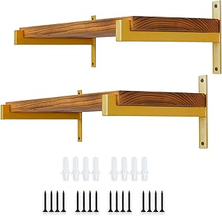Regalwinkel Gold | 4 Stück Modern Regalträger 35cm | Metall Regalhalterung für Wandregal Unterstützung | Schwerlast Regalkonsole mit Schrauben