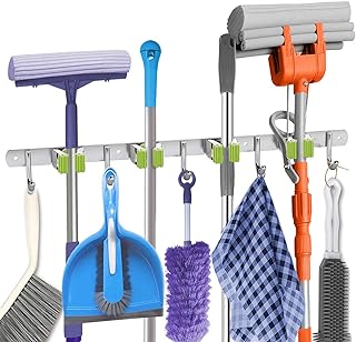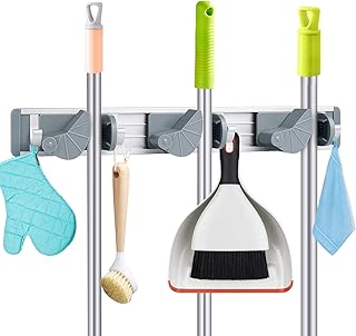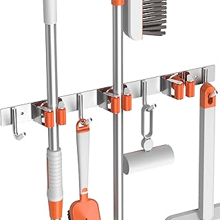 Wandhalterung für Wischmopp und Besen, Besen-Organizer, Wandhalterung, Besen-Aufhänger für Zuhause, Küche, Garage, Garten, Waschküche, Badezimmer-Organisation und Aufbewahrung, 3 Klemmen, 4 Haken