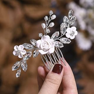 Edary Braut Blume Hochzeit Haarkämme Silber Braut Kopfschmuck Perle Haarclips Strass Haarschmuck für Frauen und Mädchen