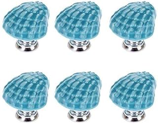 6 PCS 31 mm Pull Griff, Vintage Muschel Form Keramik Knöpfe, Schublade Schrank Küche Schrank Box Tür Bin Rollladen Badezimmer Schränke Knöpfe Griff ziehen, Home Möbel Dekorieren Griffe Knöpfe blau
