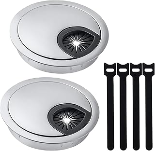 2 Stück Kabeldurchlass Kabeldurchführung, Angdarun Kabeldurchlass 60mm Ø Metall matt Chrom Kabeldurchführungen mit Kabelbinder für Möbel Schreibtisch Büro Arbeitsplatten